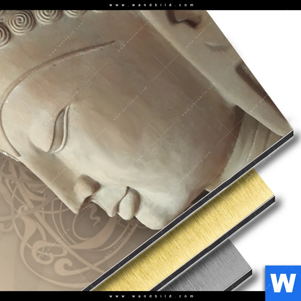 Buddha - Feng Shui Aluminiumbild mit metallischem Effekt inkl. vormontiertem Rückrahmen