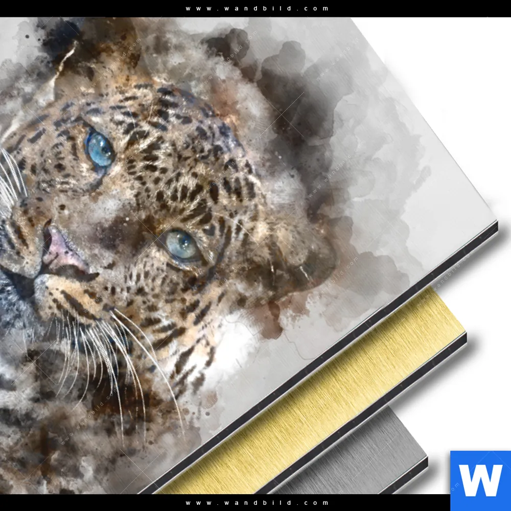 Aluminiumbild gebürstet | Leopard Aquarell | Hochformat