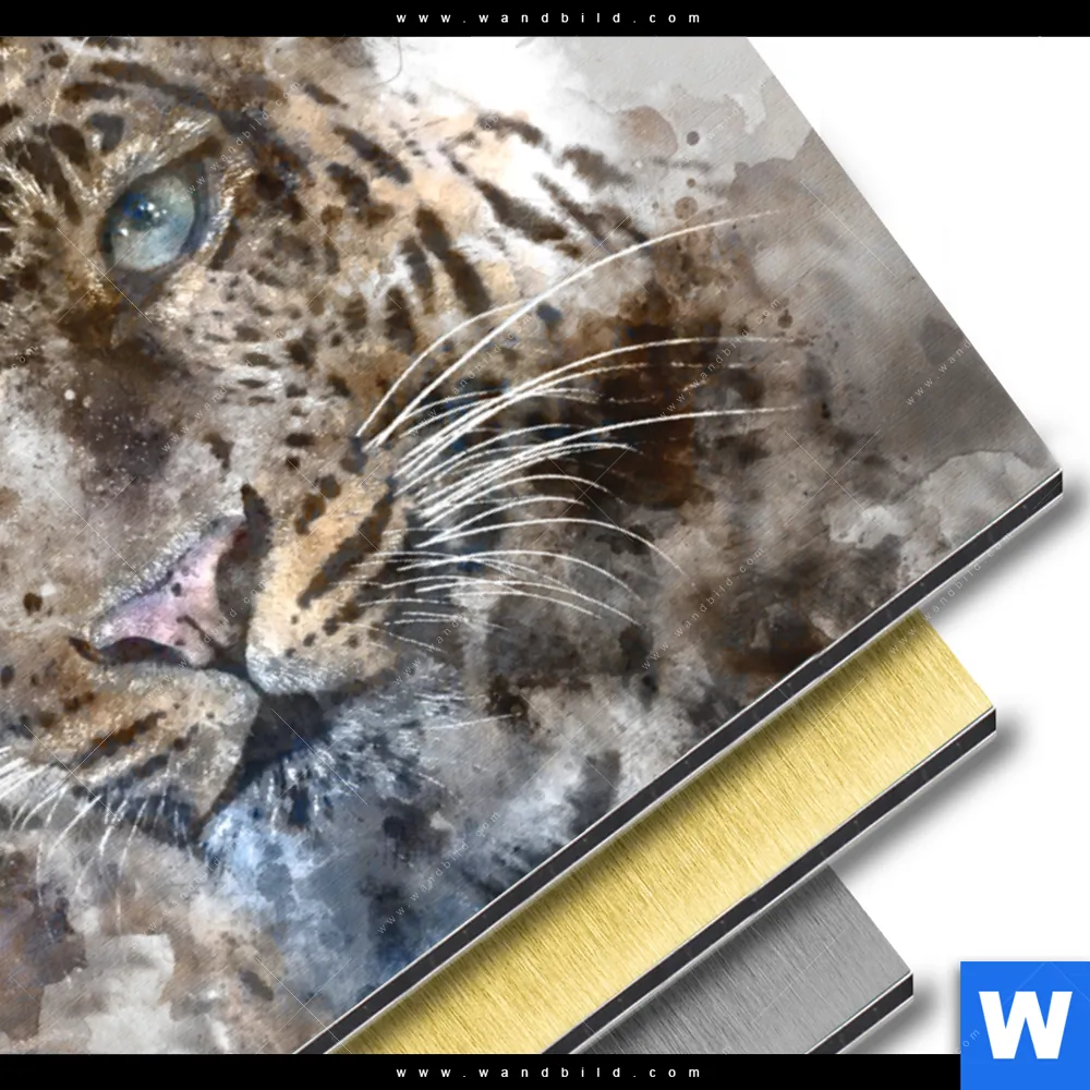 Aluminiumbild gebürstet | Leopard Aquarell | Querformat