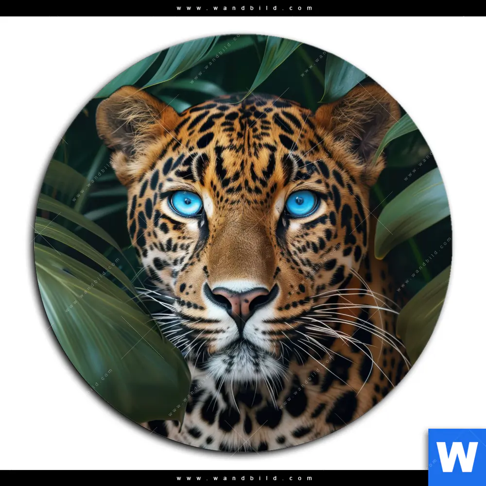 Aluminiumbild gebürstet | Leopard mit blauen Augen | Rund