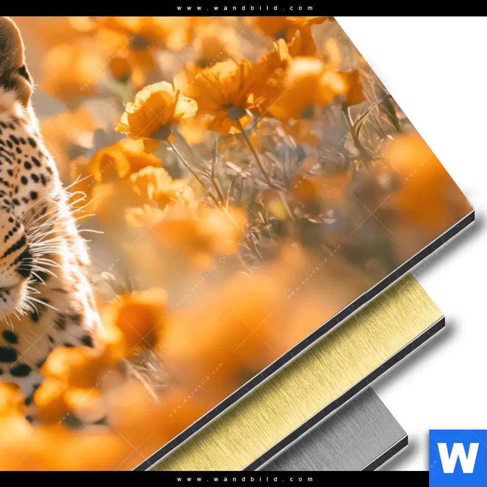 Aluminiumbild gebürstet | Leopardentraum in Orange | Querformat