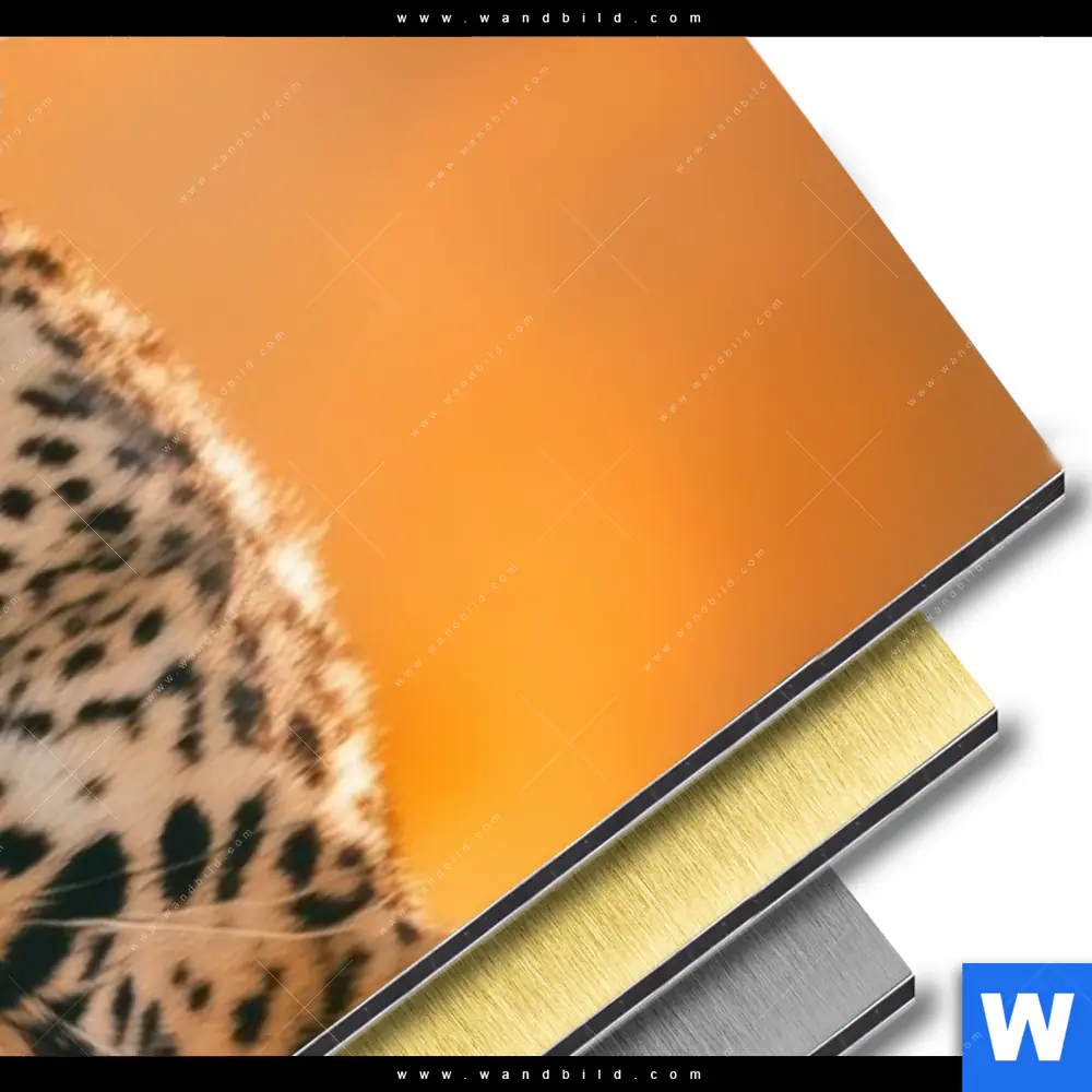 Aluminiumbild gebürstet | Leopardentraum in Orange | Schmal