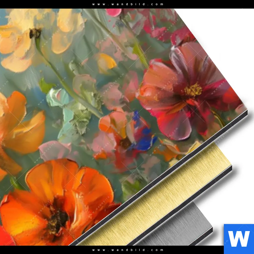 Aluminiumbild gebürstet | Leuchtende Frühlingsblumen | Panorama