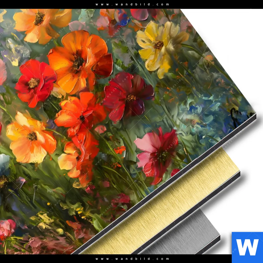 Aluminiumbild gebürstet | Leuchtende Frühlingsblumen | Querformat