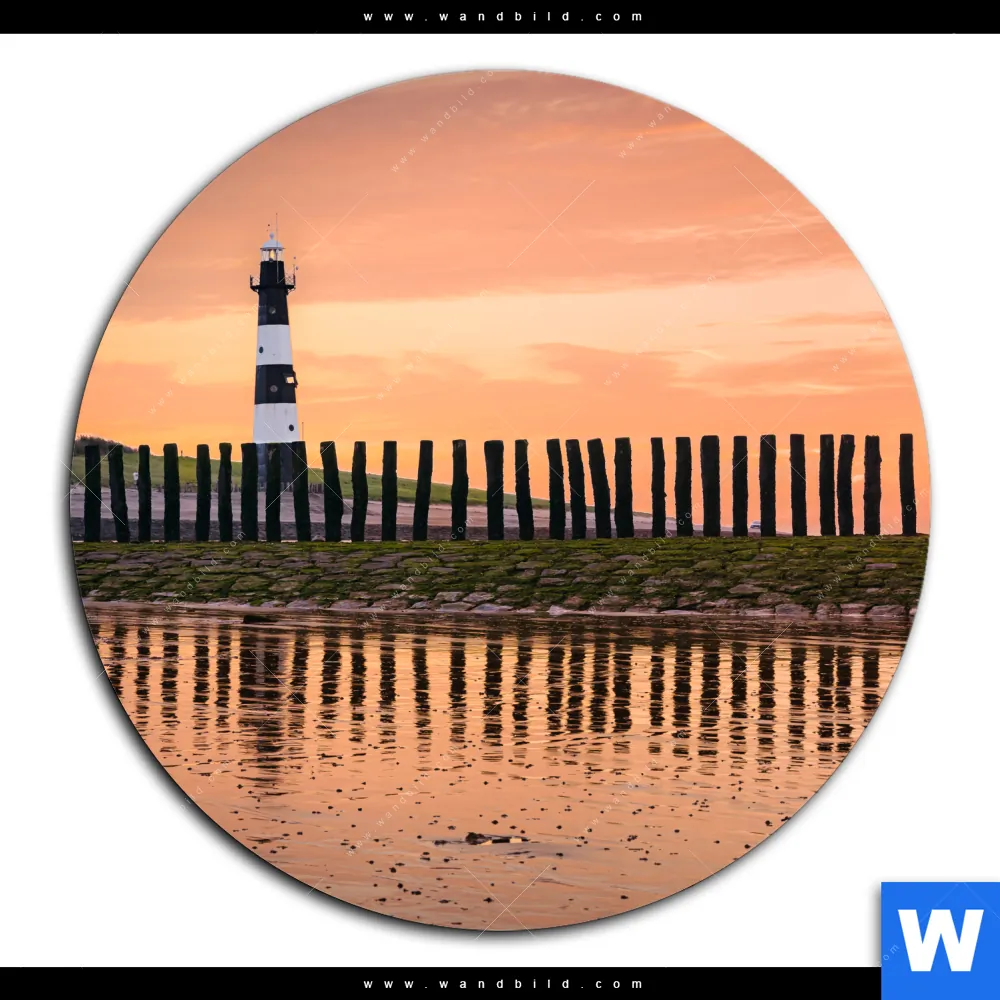 Aluminiumbild gebürstet | Leuchtturm bei Sonnenuntergang | Rund
