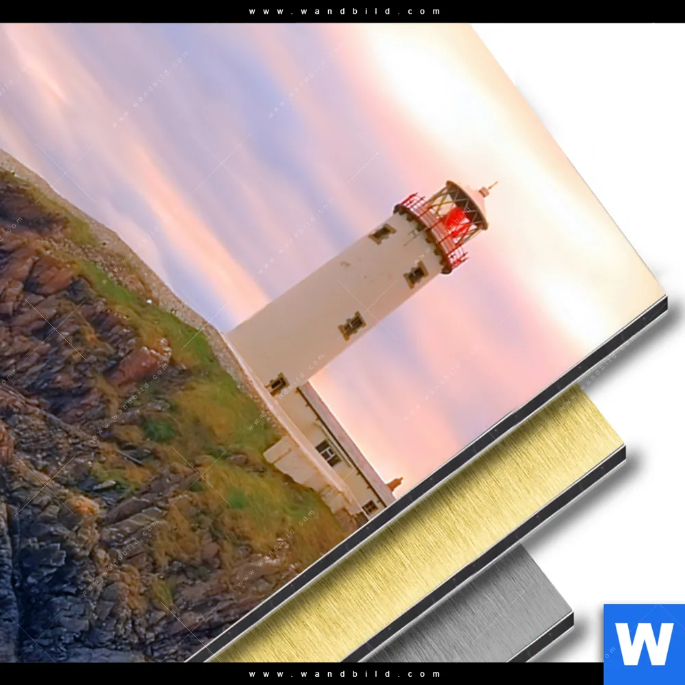 Aluminiumbild gebürstet | Leuchtturm bei stürmischer See | Hochformat