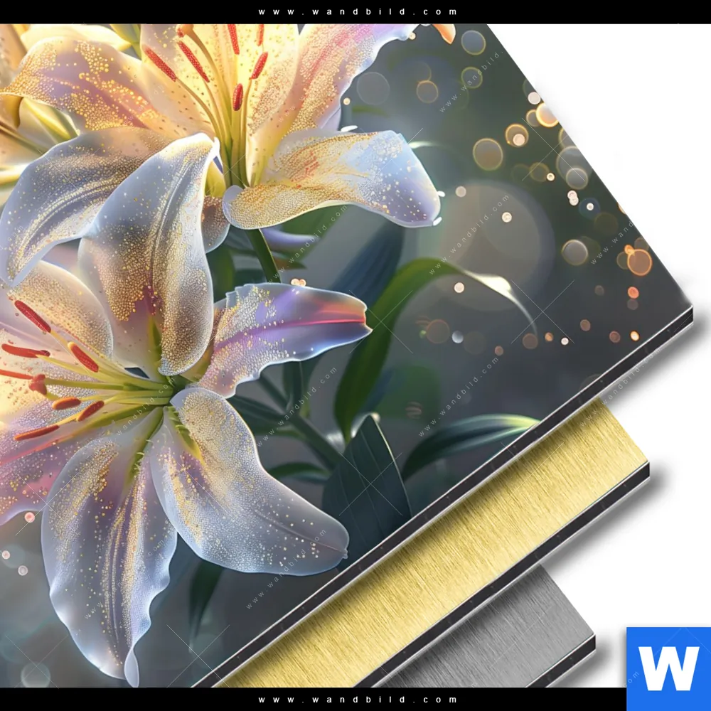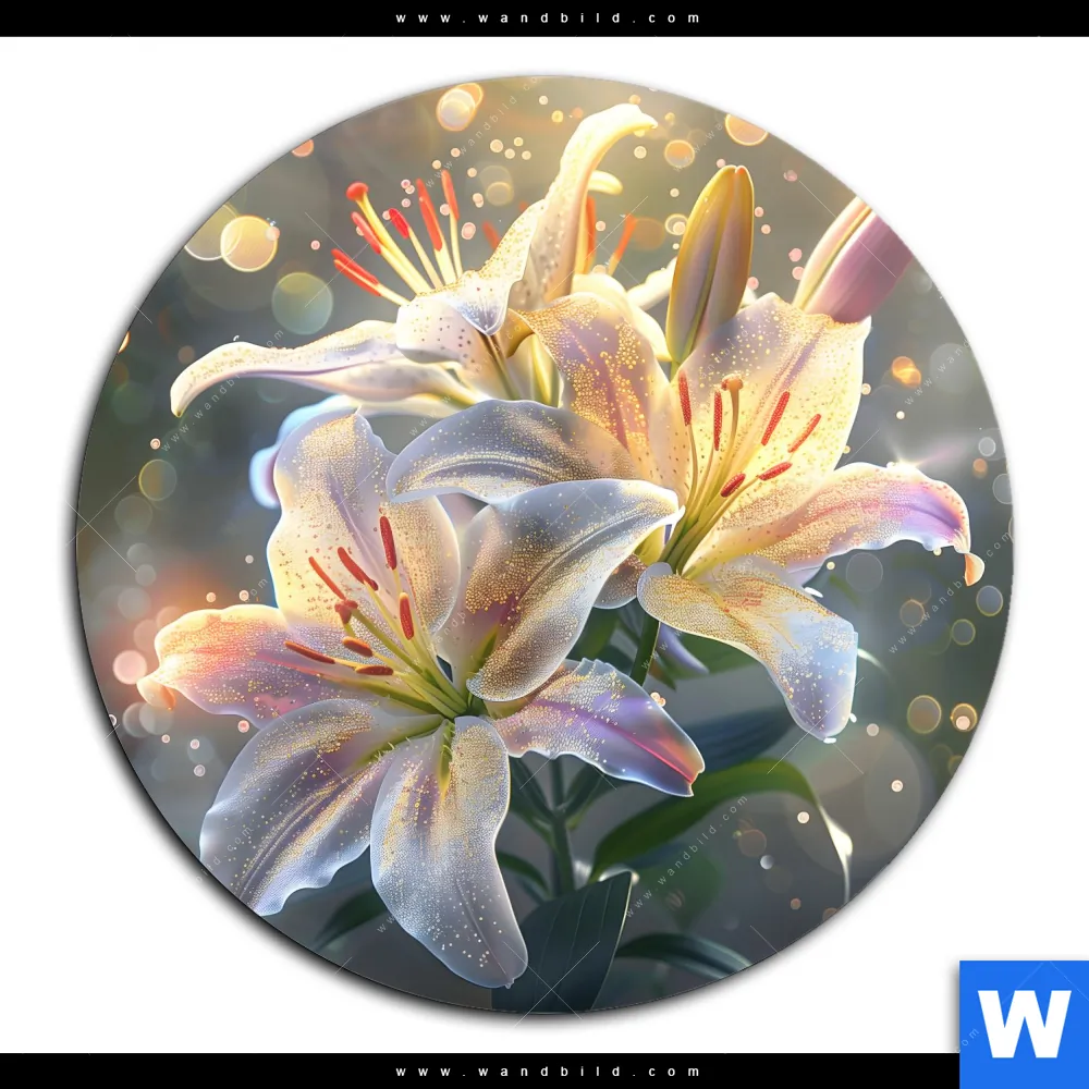 Aluminiumbild gebürstet | Lilien im Morgenlicht | Rund