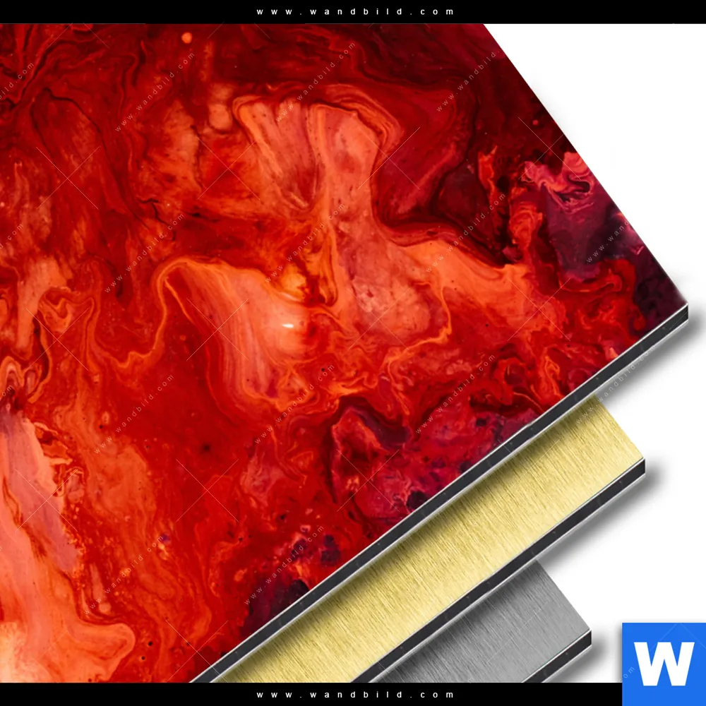 Aluminiumbild gebürstet | Liquid Marmor rot | Querformat