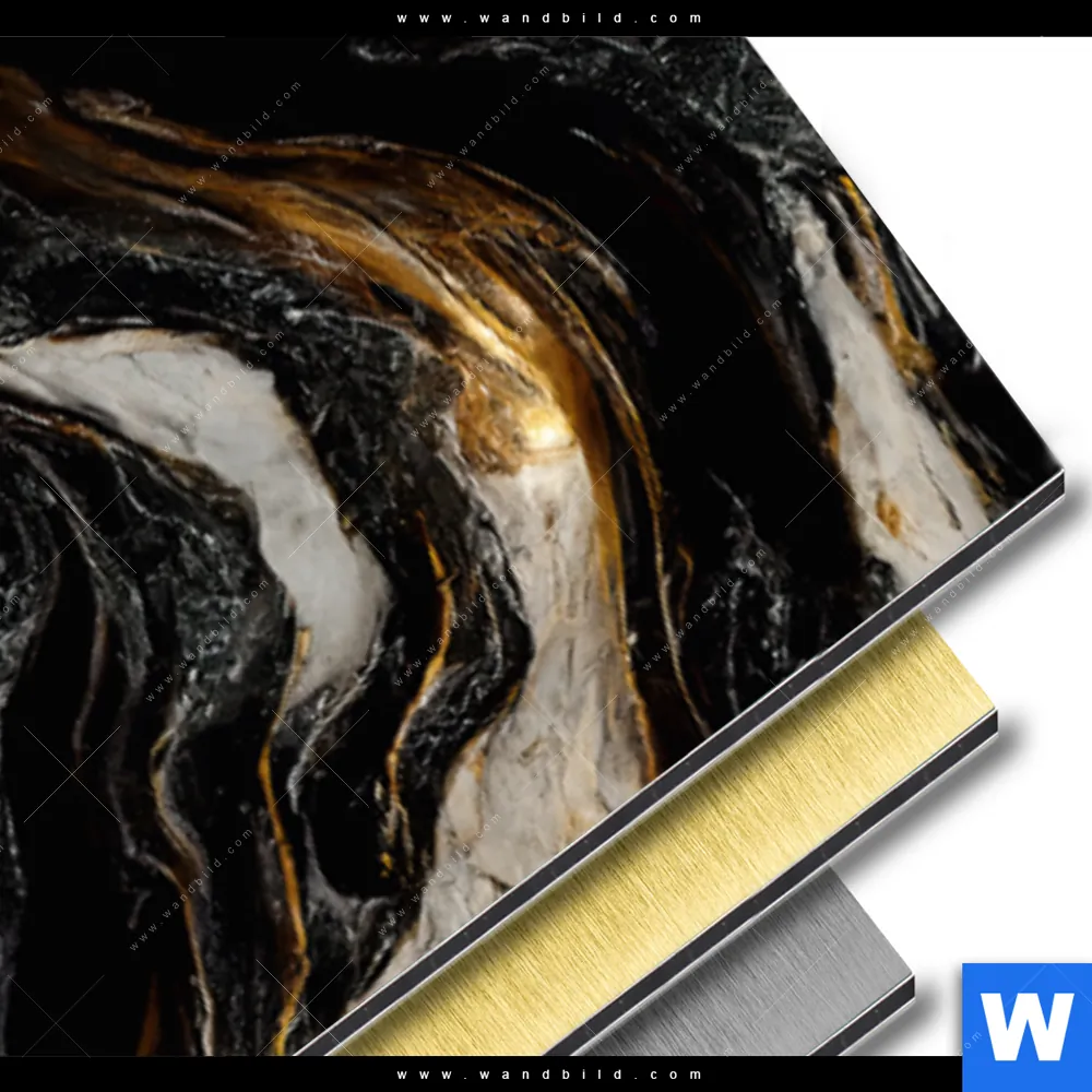 Aluminiumbild gebürstet | Liquid Marmor Schwarz Gold | Schmal