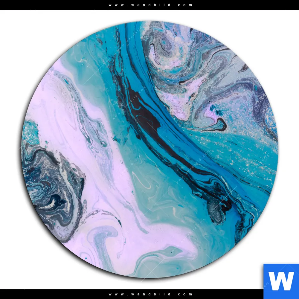 Aluminiumbild gebürstet | Liquid Marmor Türkis Flieder | Rund