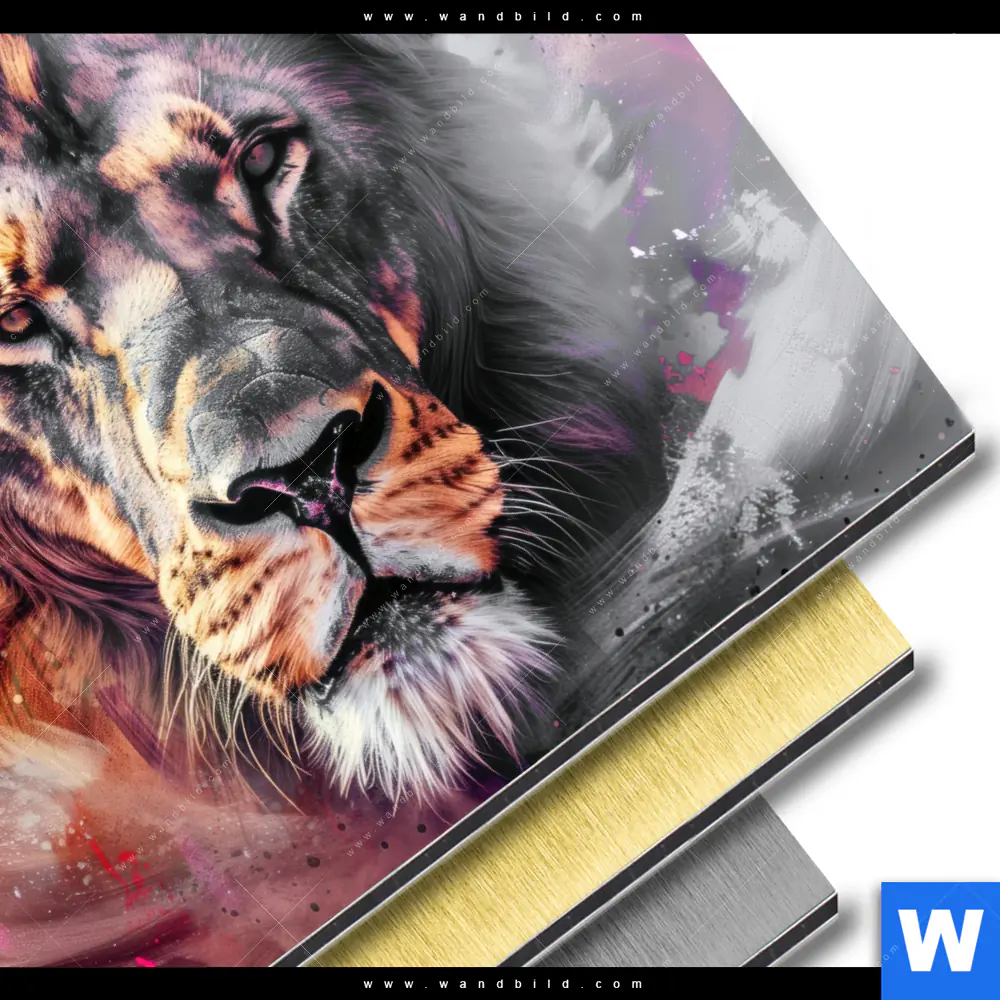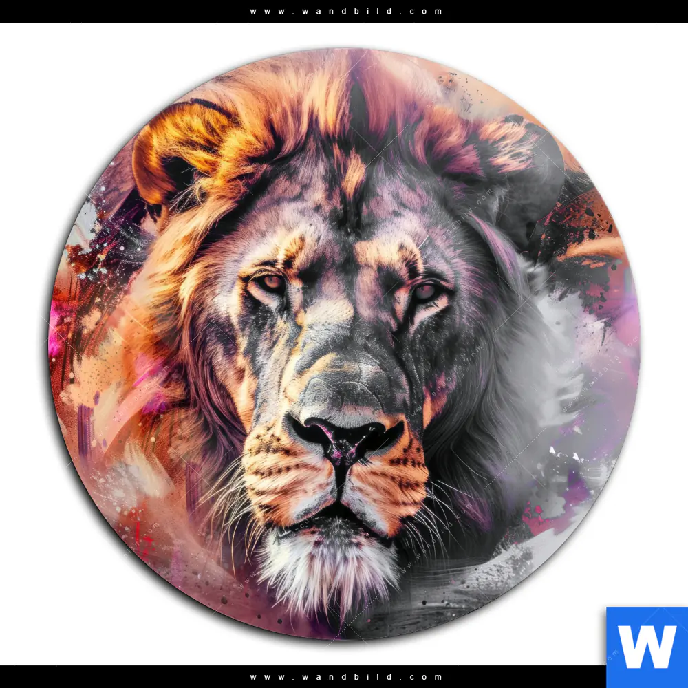 Aluminiumbild gebürstet | Löwe im Farbensturm | Rund