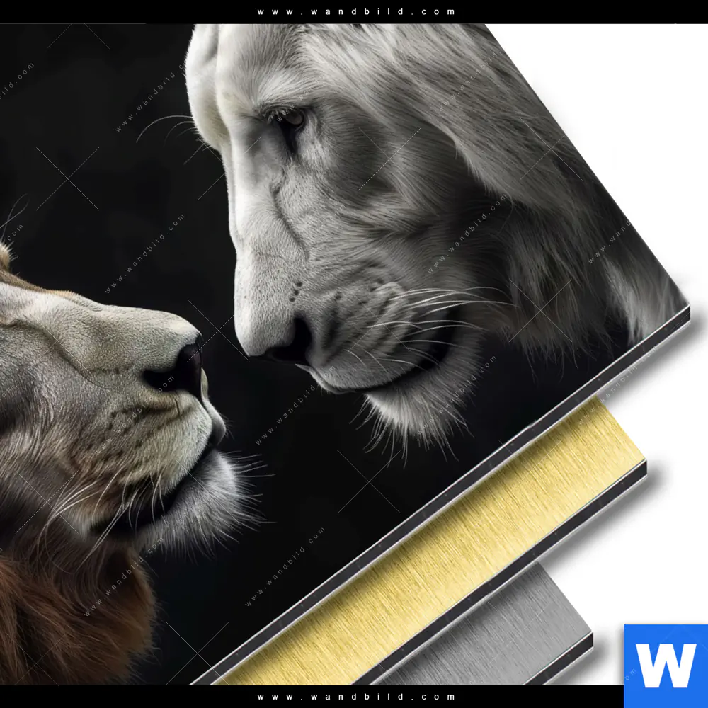 Aluminiumbild gebürstet | Löwen - Zweisamkeit | Quadrat