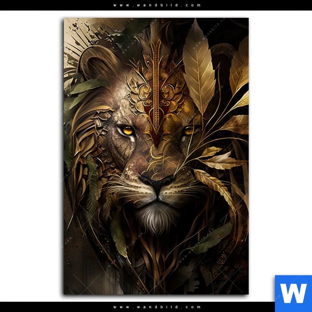 Aluminiumbild gebürstet | Löwenkopf mit Krone | Hochformat