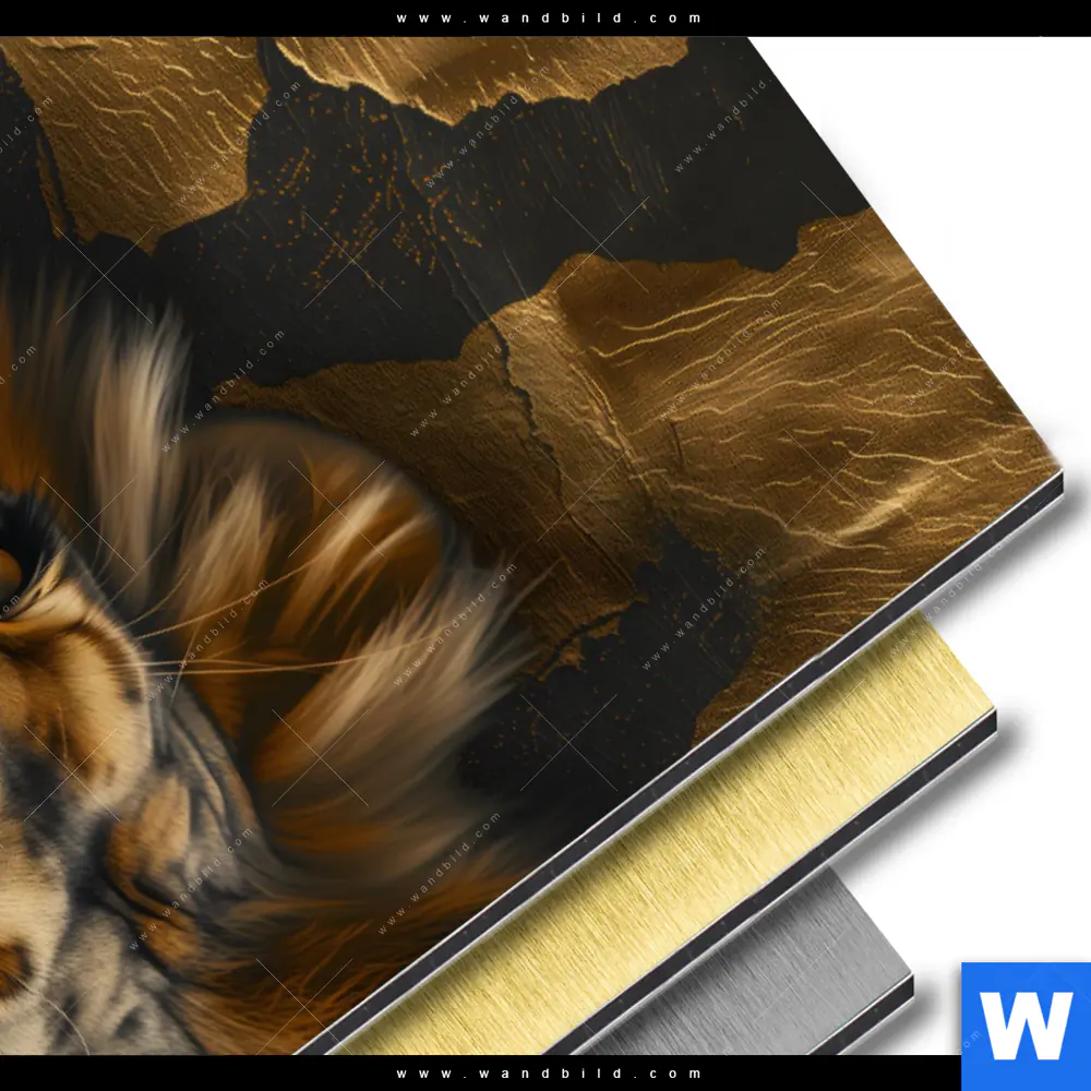 Aluminiumbild gebürstet | Löwenportrait: Kraft und Eleganz | Hochformat