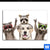 Aluminiumbild gebürstet | Lustige Waschbären mit Hund | Querformat