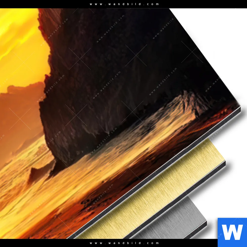▶️ NEU: GRATIS Versand (DE) ▶️ Brillante Kunst in Metall-Optik ▶️ Druck auf silber oder gold gebürstete Alu-Verbundplatte ▶️ Materialstärke 3 mm ▶️ weiße Farben werden nicht gedruckt - metallischer Charakter an diesen Stellen sichtbar ▶️ Hitzebeständig ▶️ kratz- & wischfest ▶️ Pflegeleicht und stabil ▶️ Als Küchenrückwand geeignet ▶️ Inklusive vormontiertem Rückrahmen ▶️ schwebende Optik