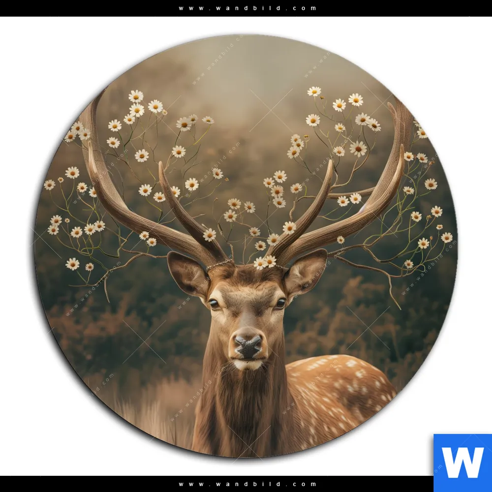 Aluminiumbild gebürstet | Magischer Hirsch im Waldrand | Rund