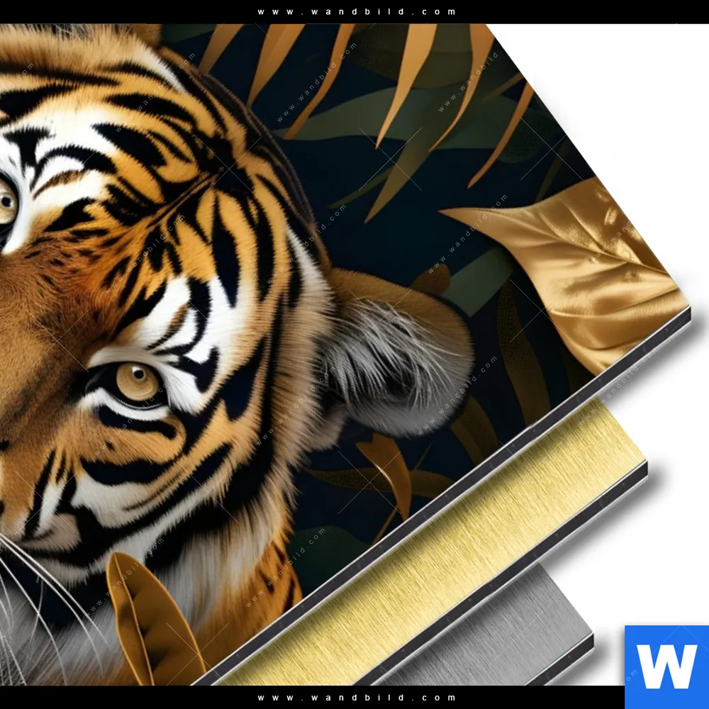 Aluminiumbild gebürstet | Majestätischer Tiger im Dschungel | Hochformat