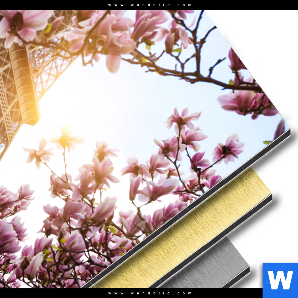 Aluminiumbild gebürstet | Mangnolien in Paris | Hochformat