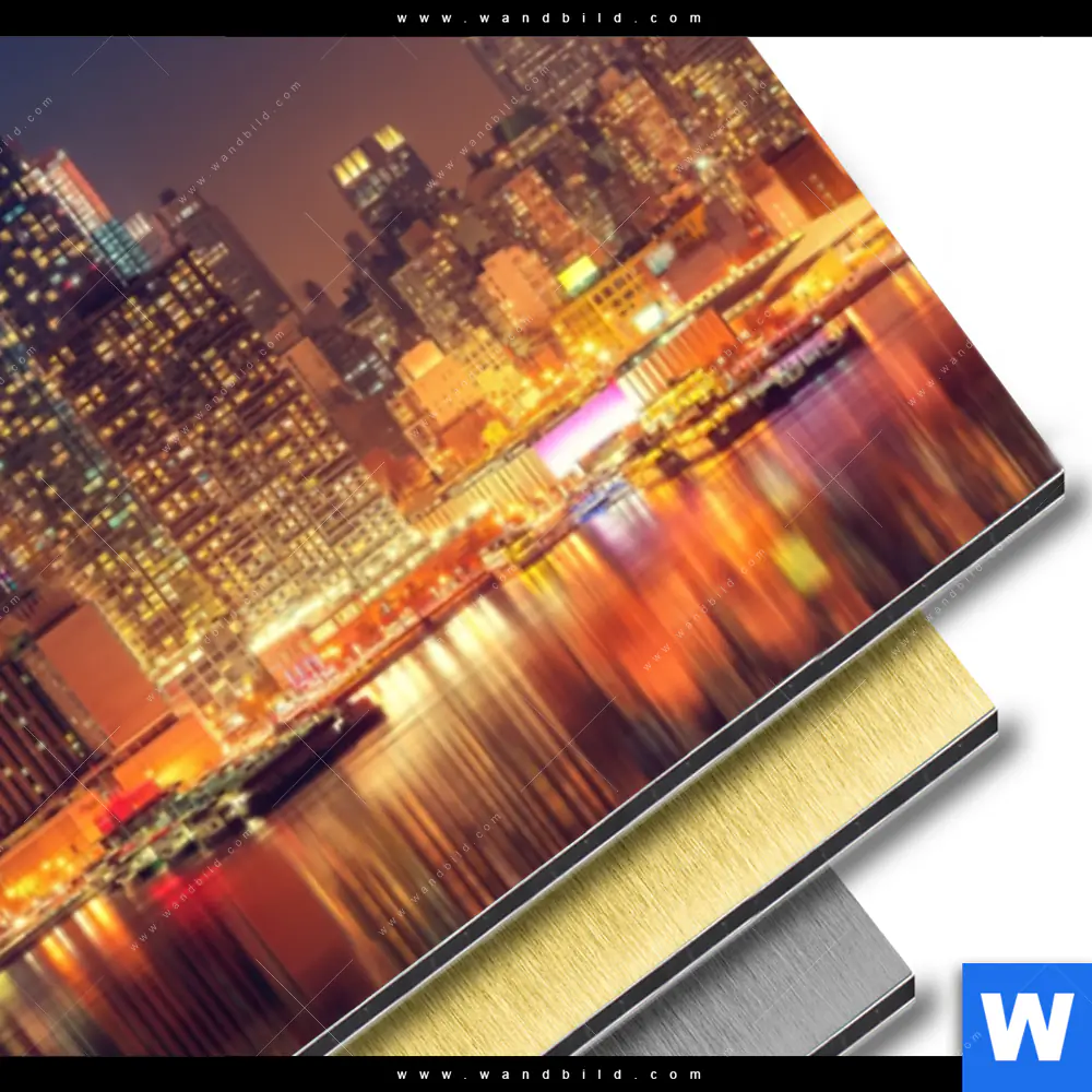 Städte - Skylines Aluminiumbild mit metallischem Effekt inkl. vormontiertem Rückrahmen