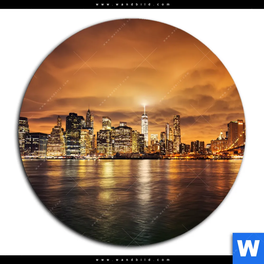 Aluminiumbild gebürstet | Manhatten bei Sonnenuntergang | Rund