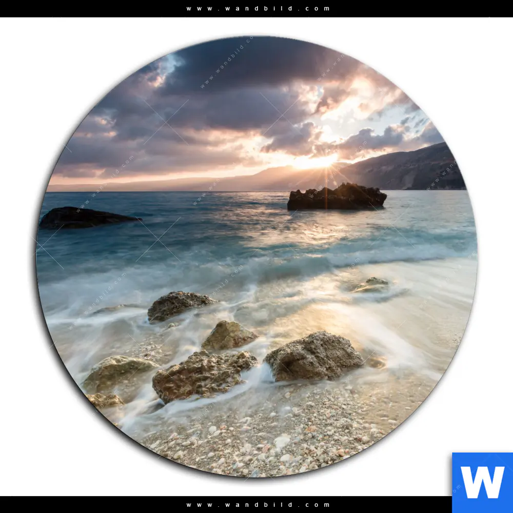 Aluminiumbild gebürstet | Meeresrauschen bei Sonnenuntergang | Rund