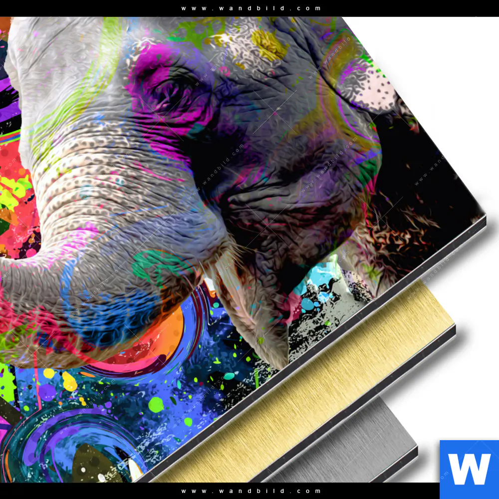 Aluminiumbild gebürstet | Moderner bunter Elefant No. 2 | Rund