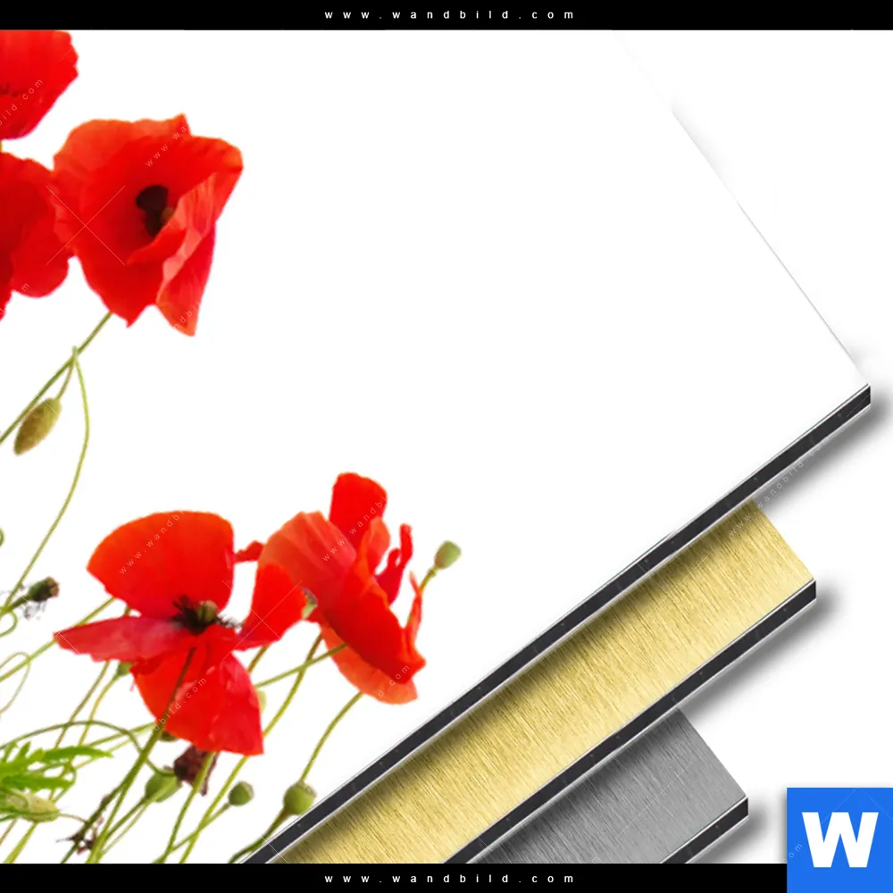 Aluminiumbild gebürstet | Mohnfeld | Hochformat