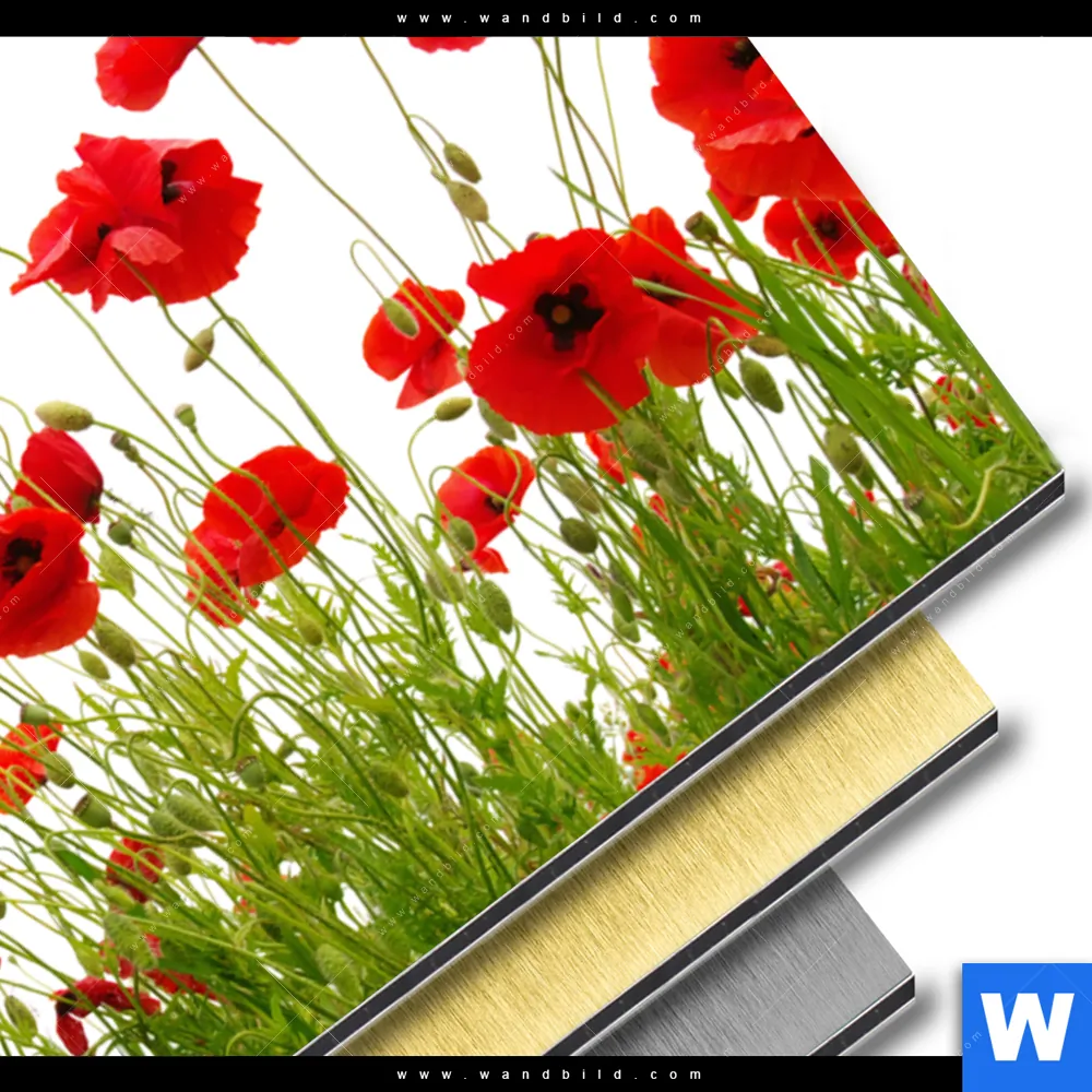 Aluminiumbild gebürstet | Mohnfeld | Querformat