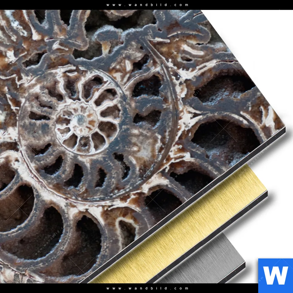 Aluminiumbild gebürstet | Muschel Fossil No. 3 | Quadrat