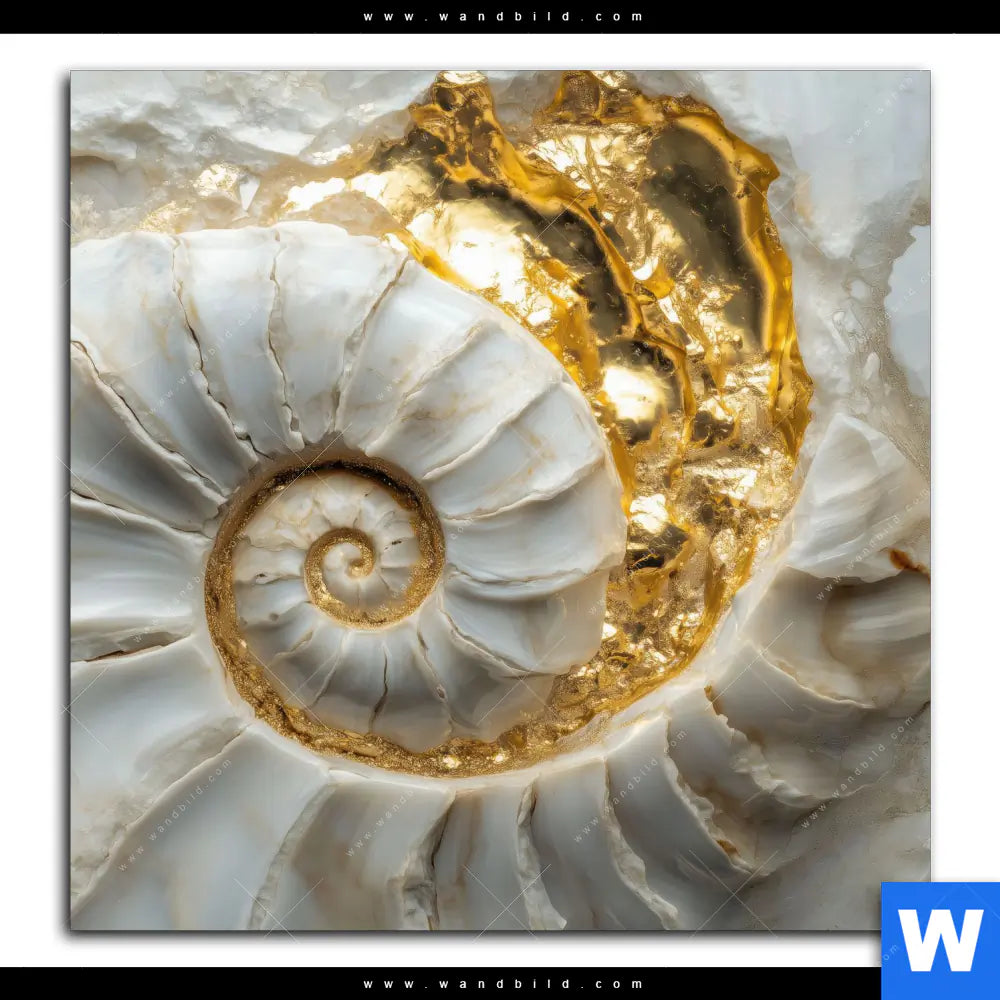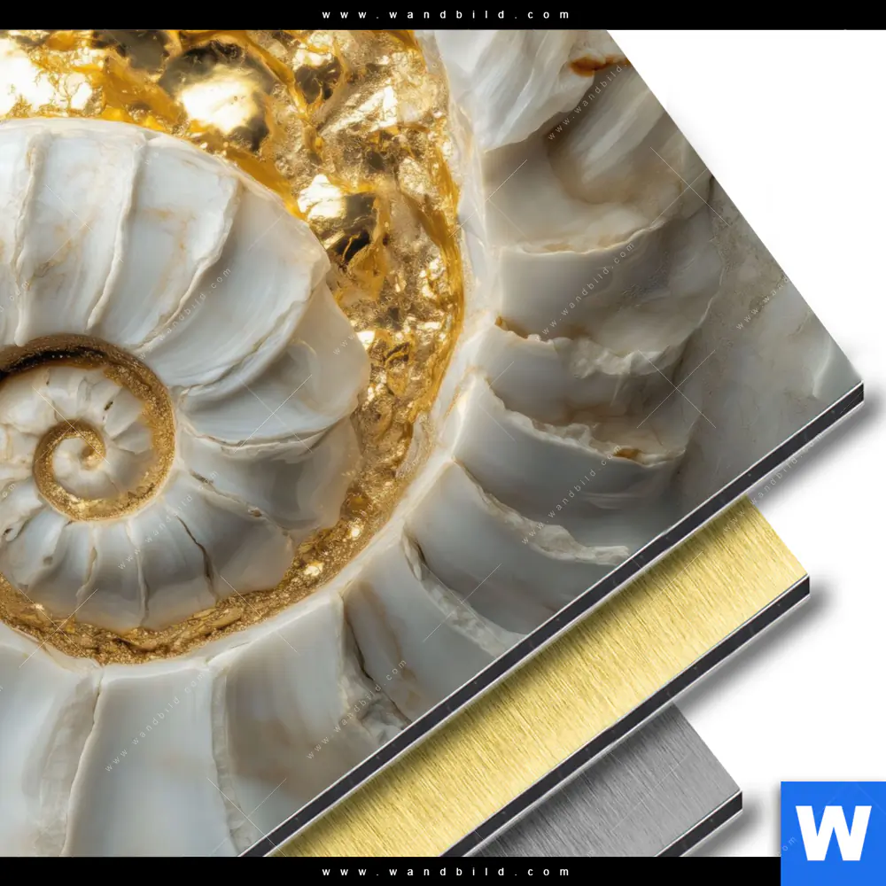 Aluminiumbild gebürstet | Muschelspirale mit Gold | Quadrat