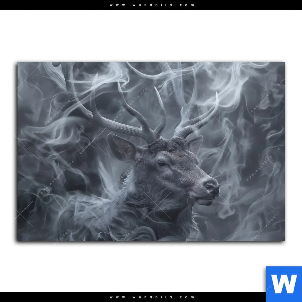 Aluminiumbild gebürstet | Mystischer Hirsch im Nebel | Querformat