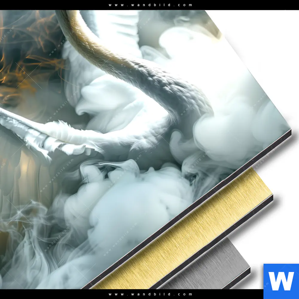 Aluminiumbild gebürstet | Mystischer Schwan im Nebel | Rund