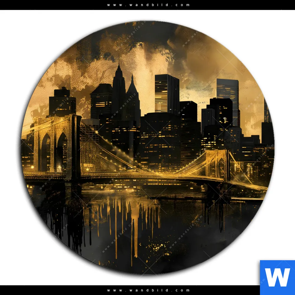 Aluminiumbild gebürstet | Nachtleuchten über Manhattan | Rund