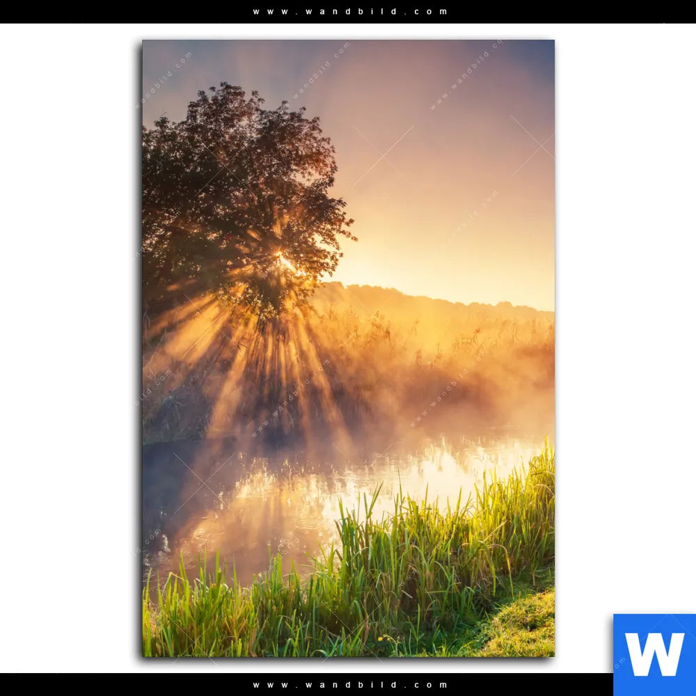 Aluminiumbild gebürstet | Nebel am Fluss | Hochformat