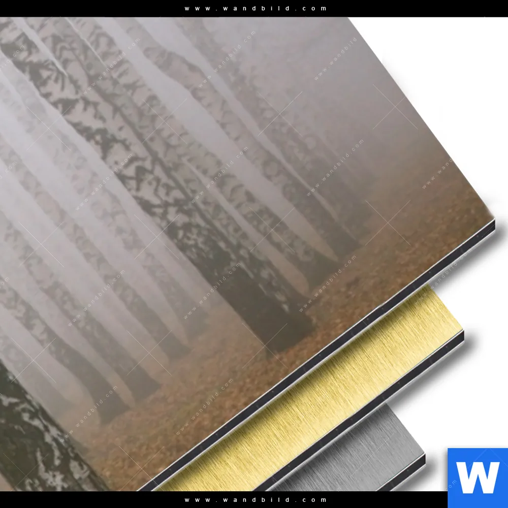 Landschaften, Wald - Bäume Aluminiumbild mit metallischem Effekt inkl. vormontiertem Rückrahmen