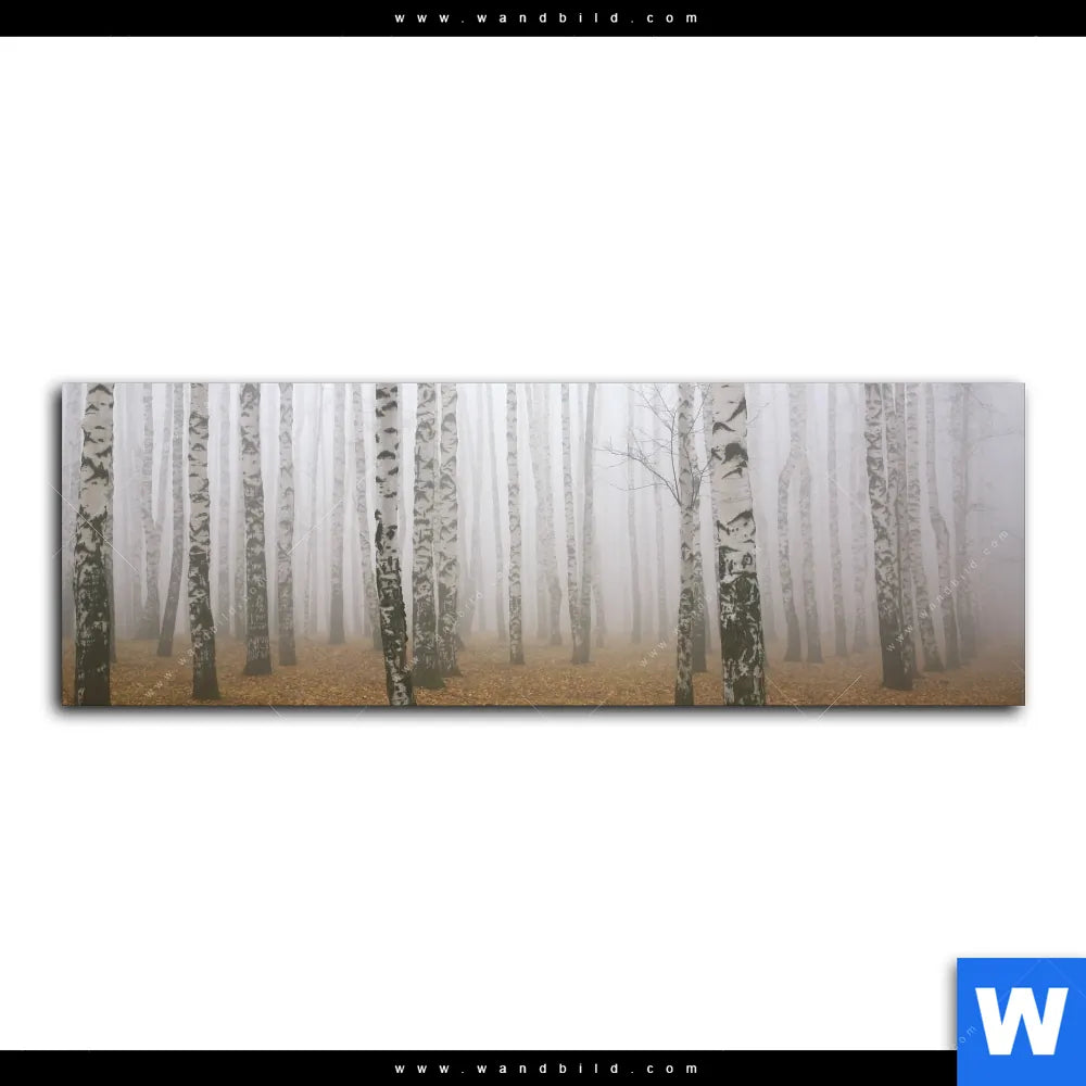 Aluminiumbild gebürstet | Nebel im Birkenwald | Panorama