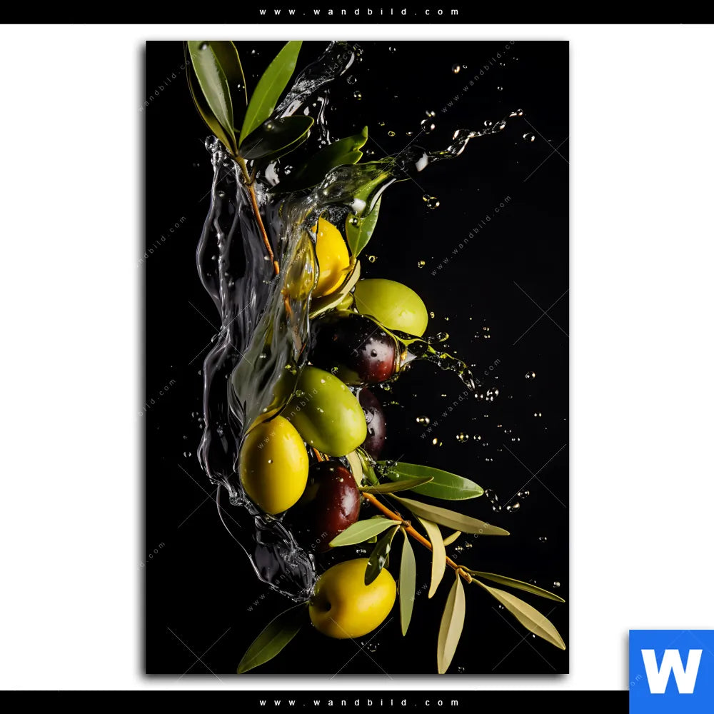 Aluminiumbild gebürstet | Oliven Splash | Hochformat