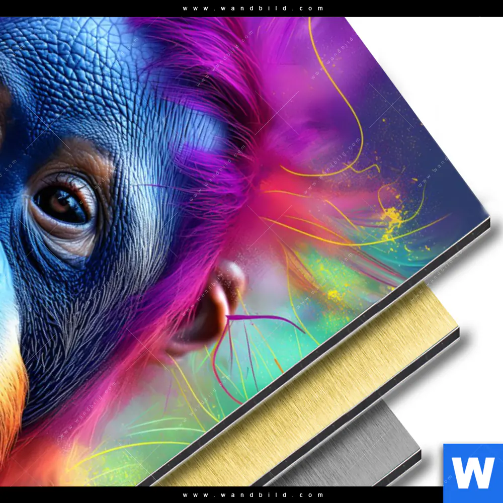 Aluminiumbild gebürstet | Orang-Utan in Regenbogenfarben | Hochformat