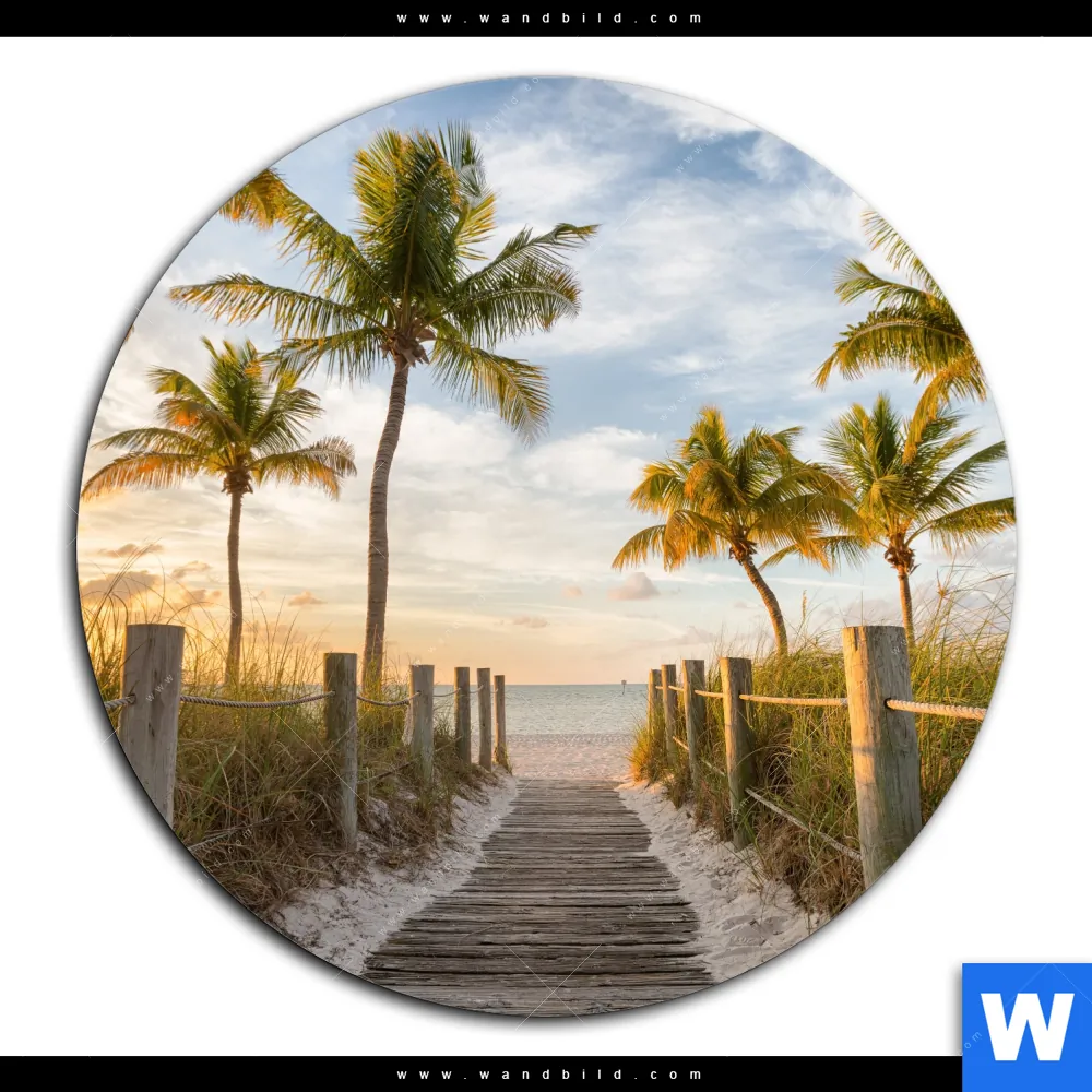 Aluminiumbild gebürstet | Palmen am Strandweg | Rund
