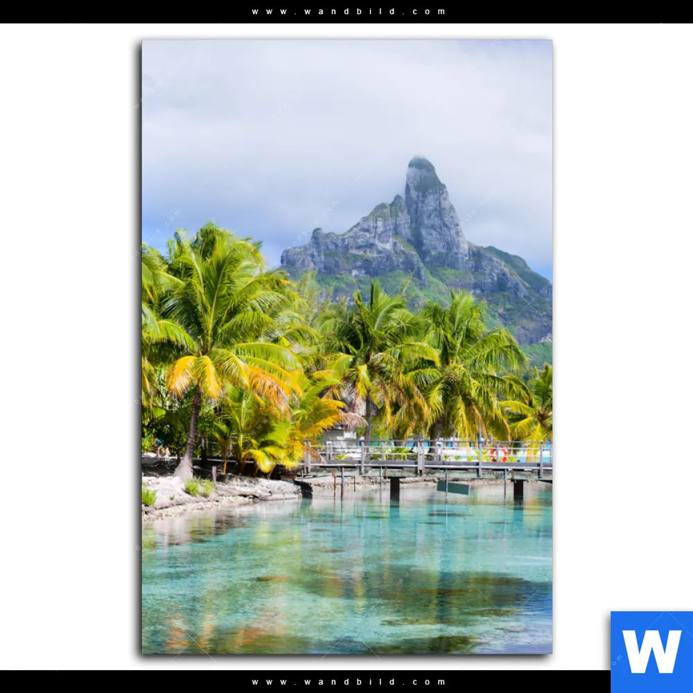 Aluminiumbild gebürstet | Palmen & Berg auf Insel | Hochformat