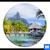 Aluminiumbild gebürstet | Palmen & Berg auf Insel | Rund