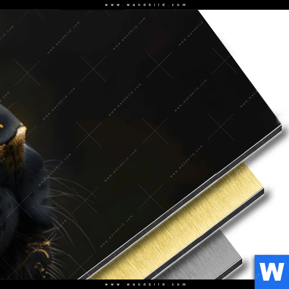 Aluminiumbild gebürstet | Panther mit goldenen Ornamenten | Panorama