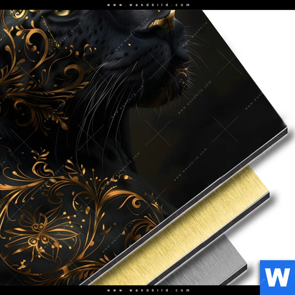 Aluminiumbild gebürstet | Panther mit goldenen Ornamenten | Quadrat