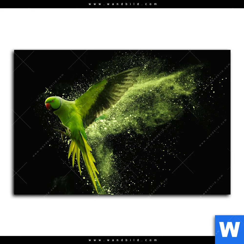 Aluminiumbild gebürstet | Papagei - grüne Farbexplosion | Querformat