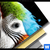 Aluminiumbild gebürstet | Papagei mit bunten Farbspritzern | Schmal