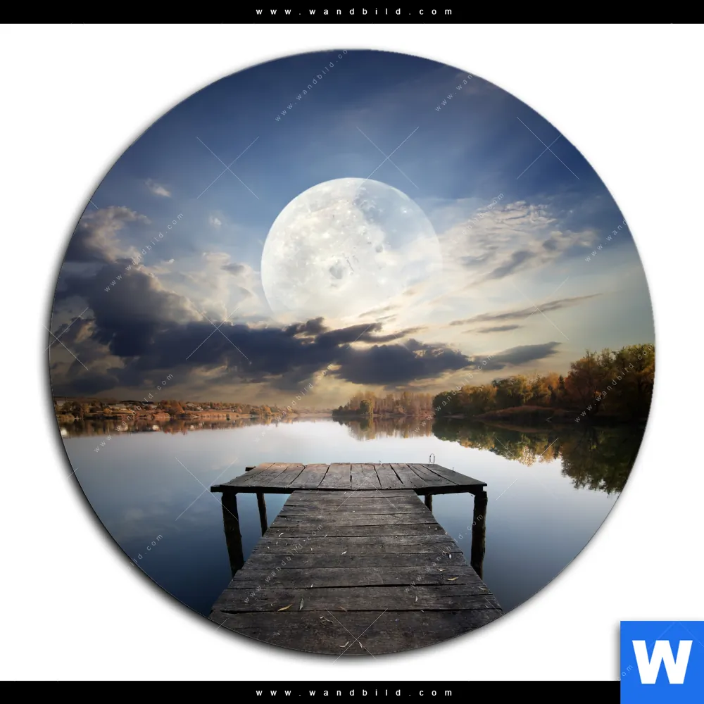 Aluminiumbild gebürstet | Pier am Fluss | Rund