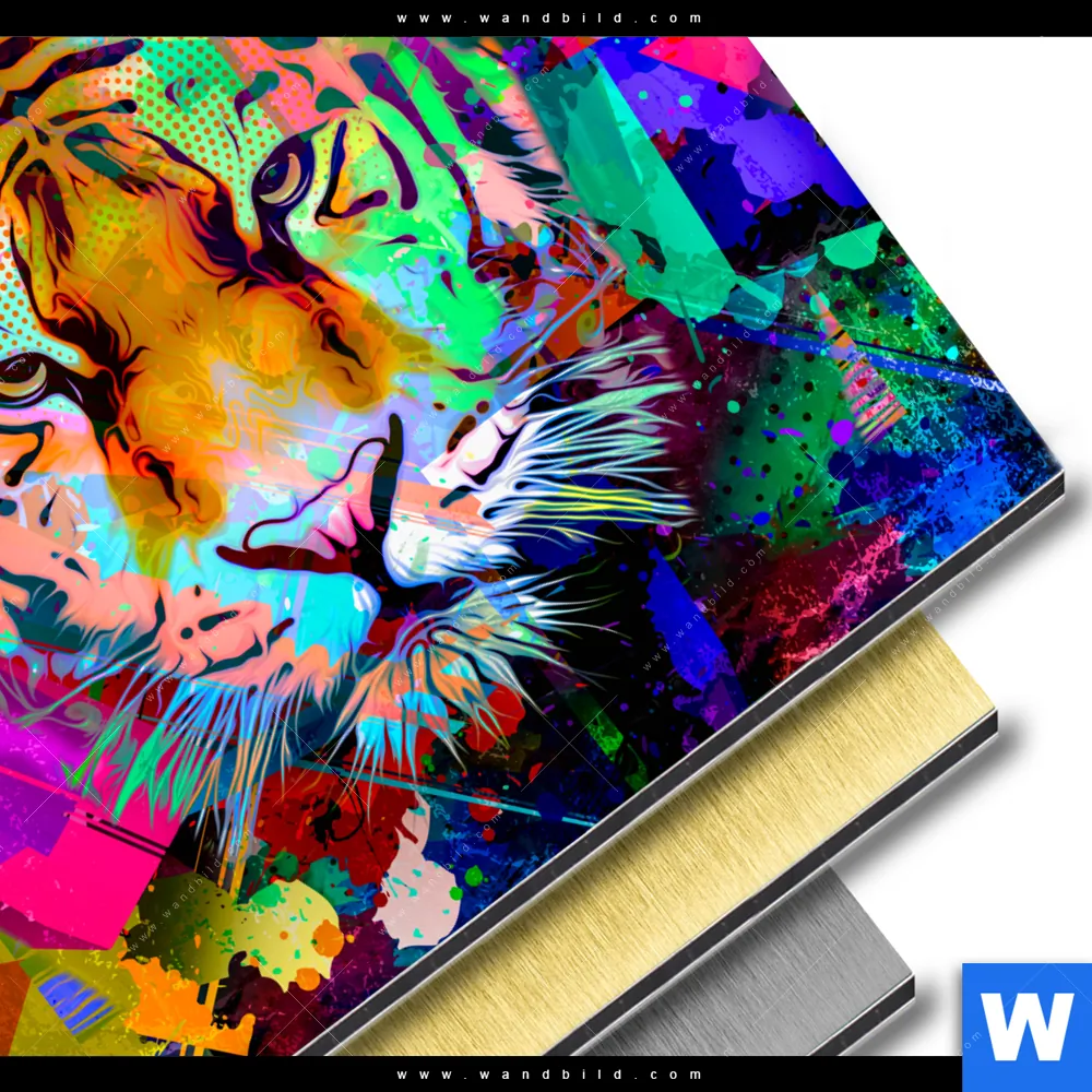 Aluminiumbild gebürstet | Pop Art Tiger No. 2 | Quadrat
