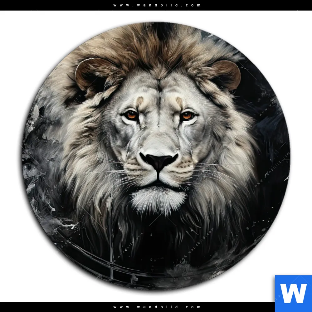 Aluminiumbild gebürstet | Porträt eines Löwen | Rund