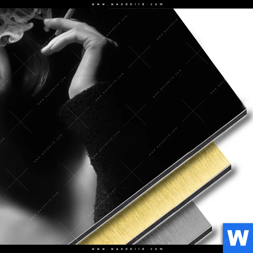 Aluminiumbild gebürstet | Rauchende Lady | Querformat